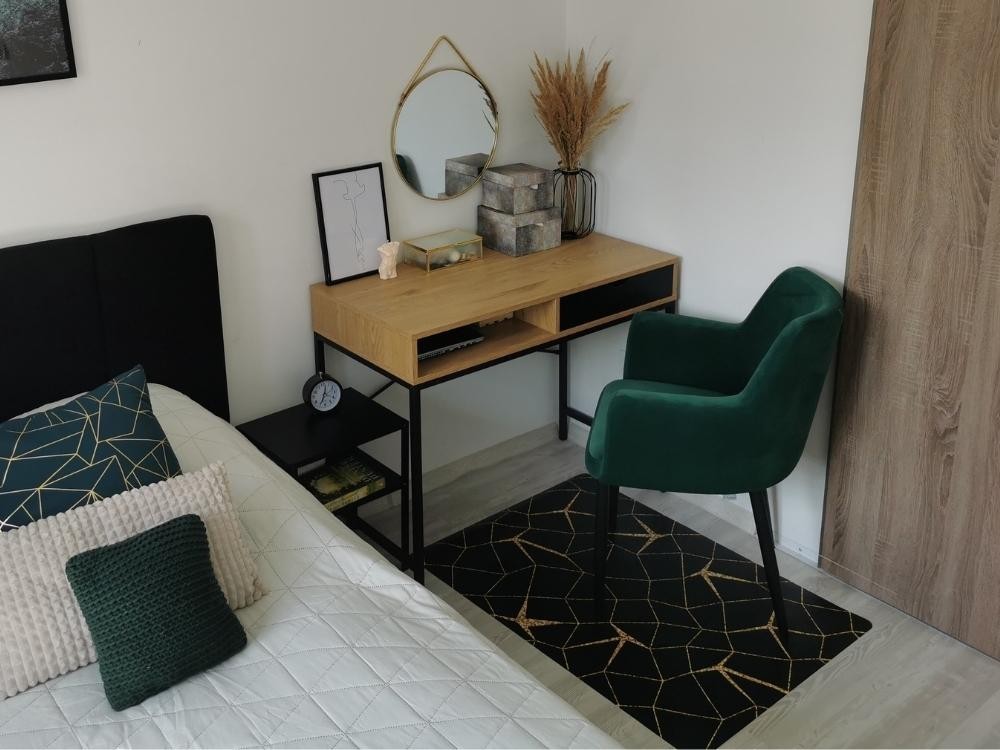 Nejdůležitějším prvkem vybavení zůstává samozřejmě stůl. V malých bytech je skvělým řešením model s lehkou formou, který nevyvolává pocit tíhy a dobře zapadá do malého prostoru. Pokud máš naopak k dispozici samostatný pokoj nebo větší pracovnu, můžeš si dovolit rozměrnější pracovní desku, přídavné zásuvky nebo spojení s regály a skříňkami na ukládání dokumentů. Nejlepší je volit takový nábytek, který zajišťuje funkčnost, ale také dobře ladí se zbytkem výzdoby.